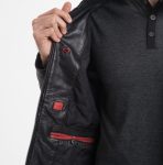 The Modena Leather Jacket is made of premium, full-grain sheep leather with quilted Cupro lining. The jacket is designed with clean lines and a slim fashion fit. Details such as a subtle debossed tone-on-tone Tesla logo as well as Tesla’s signature red contrast stitching and inside pocket welts complete the premium look and feel.