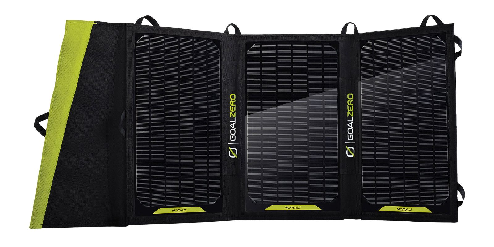 Pair with any of Goal Zero’s power packs and charge gear day or night. Foldable and portable for use anywhere. Innovative plug-and-play system. Built-in junction box with smart charging chip allow you to power handheld USB and 12V gear from the sun. Patented chaining technology combines Nomad panels for faster charge times. Highly efficient monocrystalline solar pumps out more power per square inch.