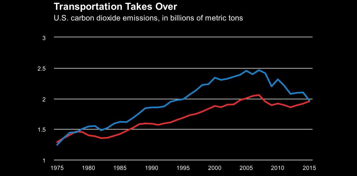 Unfortunately, it’s not only because emissions from electricity generation are declining, but also because emissions from the transportation sector have actually increased in recent years as the economy continued to grow and gas prices are staying relatively low.