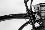 The optional ($49+) basket also has a clever feature. Anyone who has ridden a bike with a full basket before will know that adding weight to the handlebars can make a bike’s handling unpredictable, and can sometimes result in the bike falling over when parked. So Electric Bike Company has added a bracket to the frame, so that the basket attaches directly to the frame and thus doesn’t turn along with the handlebars. It comes with a motorcycle-style kickstand to help support the bike’s heavy weight, especially if loaded with cargo.