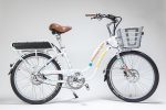 So far, Electric Bike Company sells two bike designs, both variations on the beach cruiser theme. They’ve termed them the *ahem* “Model S” (for “step-through”) and “Model C” (for “classic”). The difference is the top bar on the bicycle frame – classic has a high top bar, and step-through has a low top bar. The latter can offer easier operation if the rider is shorter, wearing a long skirt or dress, or if the bike is being used for cargo purposes (as it might be harder to swing your leg over the back of the bike if something is attached to the included cargo rack). These designs are available in variety of frame, rim and seat colors, or a “personalized model” where individuals or companies can add their own designs to the frame.