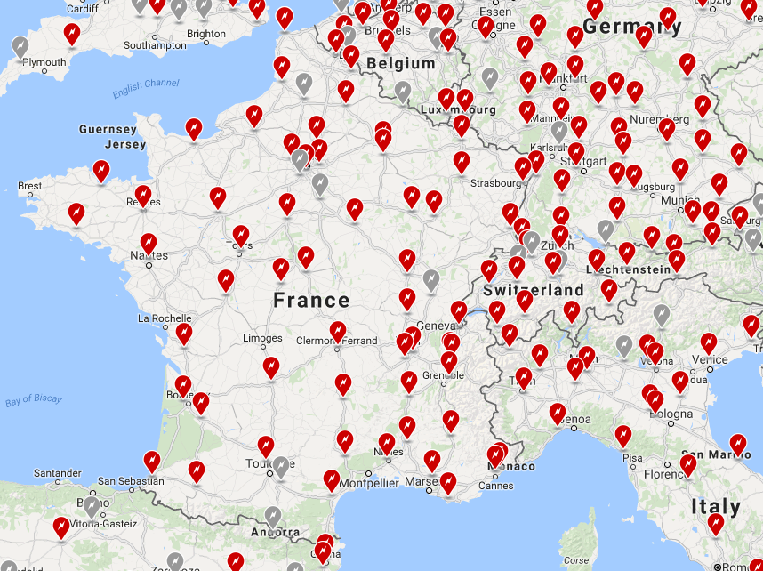 For example, if you are a Tesla owner in the UK looking to drive down to France this summer, Tesla’s ‘Charging Abroad‘ tool will show you this: