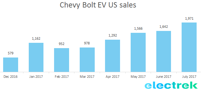 Today, GM confirmed having delivered a record number of Chevy Bolt EVs in the US last month: 1,971 units. It brings total delivered since the launch in December last year to over 10,000 units and 9,563 units since the beginning of the year.