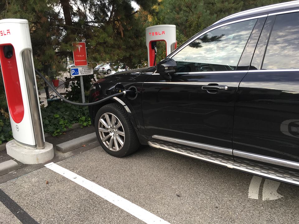 Tesla owner Bruno Mugniery caught this Volvo XC90 Plug-In at Tesla’s Chambéry Barberaz Supercharger in France last week: