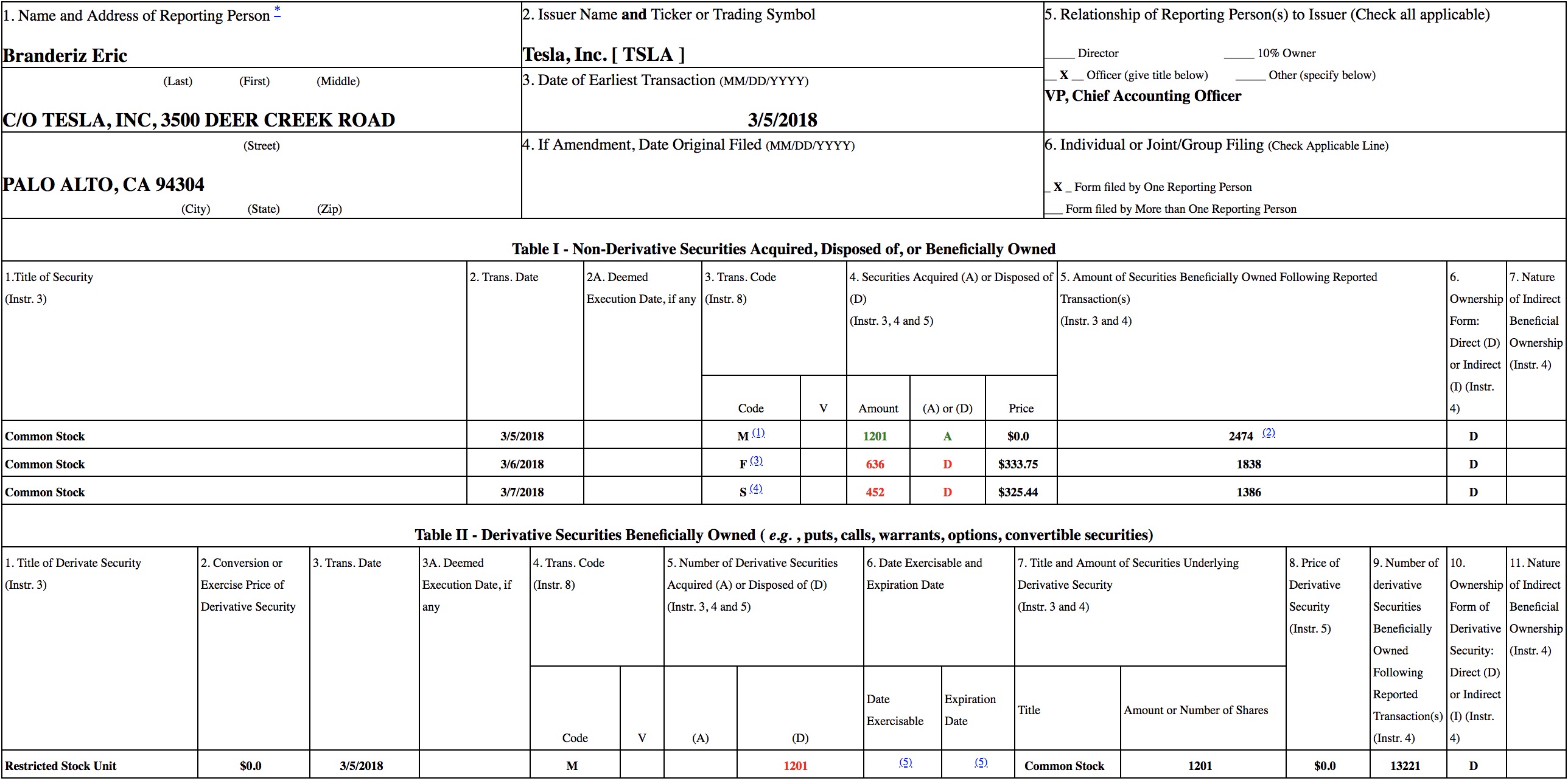 Tesla didn’t have a position of Chief Accounting Officer and created one when hiring Branderiz.