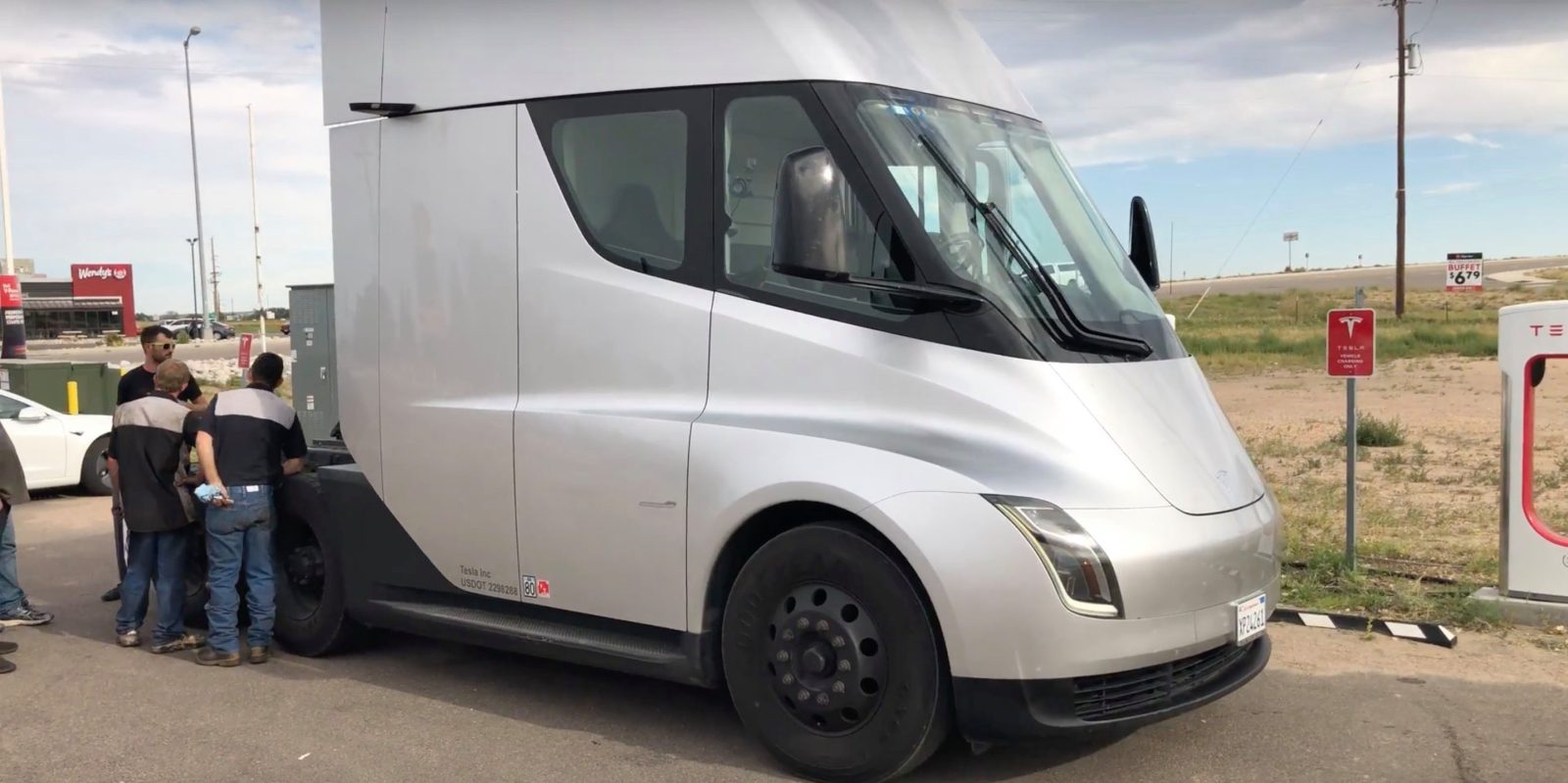 The electric truck stopped at a Supercharger in Colorado where Tesla Semi engineers talked about how they charge the electric truck at a Supercharger.
