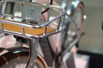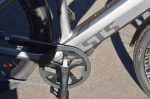 Another interesting addition to the Raleigh lineup was the Retroglide Royale, which was presented in a brushed aluminum finish. The Retroglide Royale was one of the most affordable Bosch-powered mid-drive bikes that we saw, with an MSRP of $2,299. Despite the lower price, this e-bike still comes stock with hydraulic disc brakes, plush spring seat, integrated rack and wide fenders that complete the retro look of the e-bike.