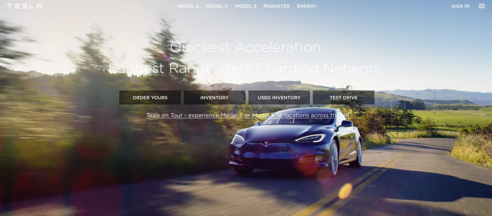 - Tesla.com homepage