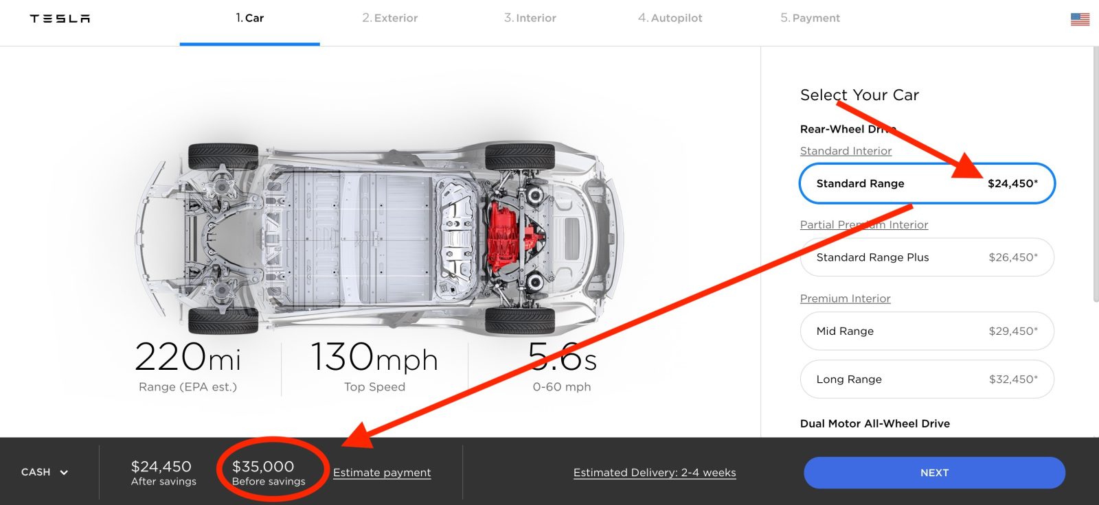 I think that it shouldn’t be the first price you see on the configurator and certainly not the most emphasized one.