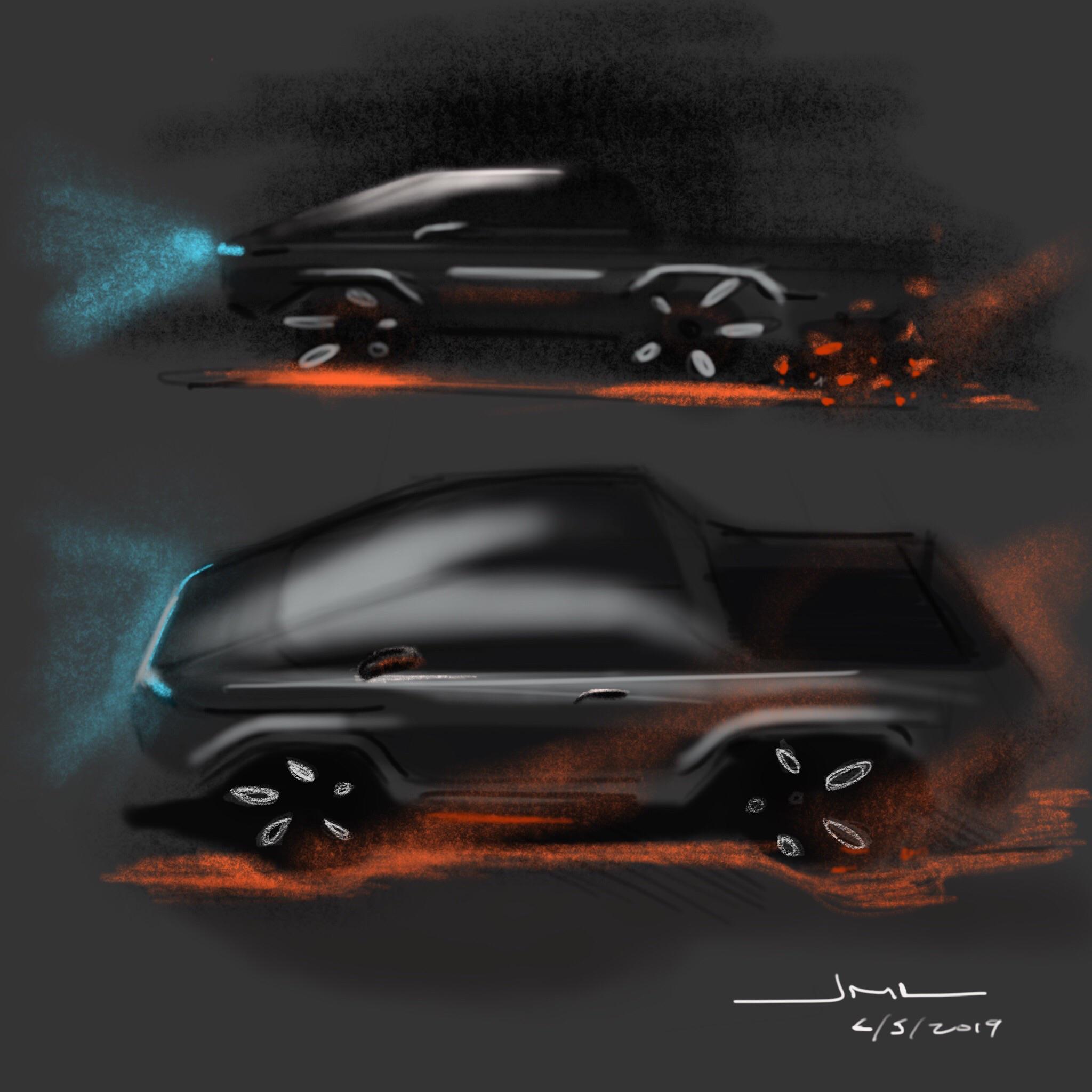 Here’s one Tesla pickup truck fan drawing that tries to incorporate the front end seen on the teaser image (via u/greenfruit on Reddit):