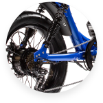 The Juiced Scorpion features a top speed of 28 mph (45 km/h) thanks to its 750 W continuous rated rear hub motor.