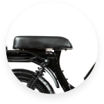 I must say though that I’m surprised to see a lack of foot pegs for a passenger. The rear rack seems to have grab handles that would support a second rider, so why not give them somewhere to put their feet? That’s one of the biggest benefits of these moped-style electric bikes, so not having passenger pegs feels like an oversight to me.