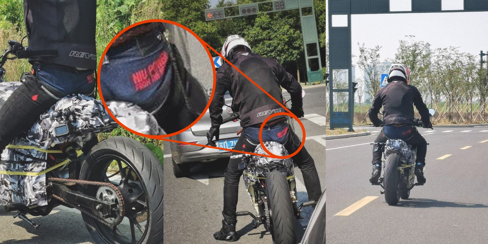 So it appears that what we have here is a new electric motorcycle prototype being tested in NIU’s backyard by a rider wearing NIU swag and with parts that resemble some existing NIU components.