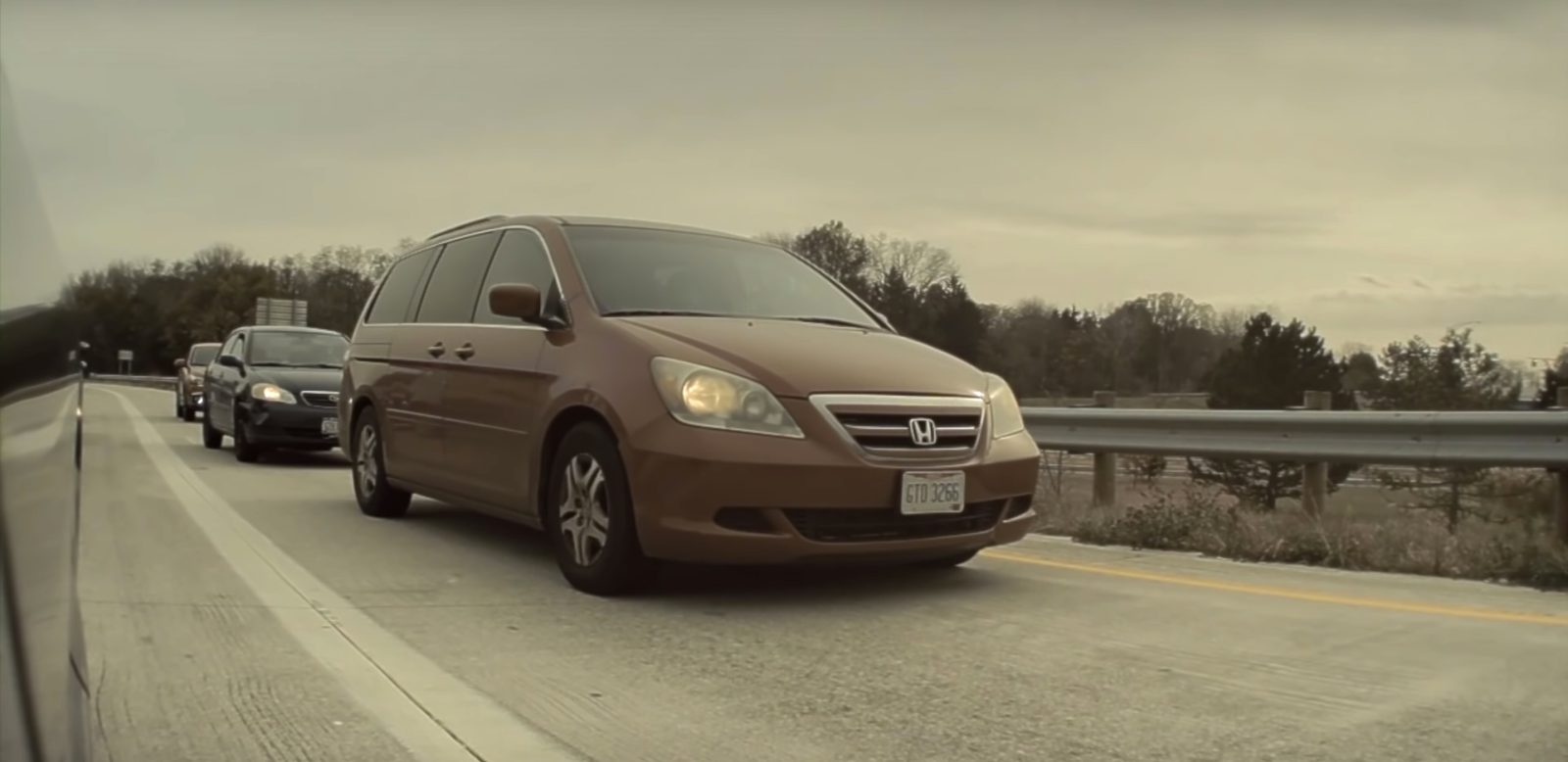 “This guy in a Honda Odyssey rides our butt out of nowhere and then starts swerving. Then proceeds to try to run us off the road.”