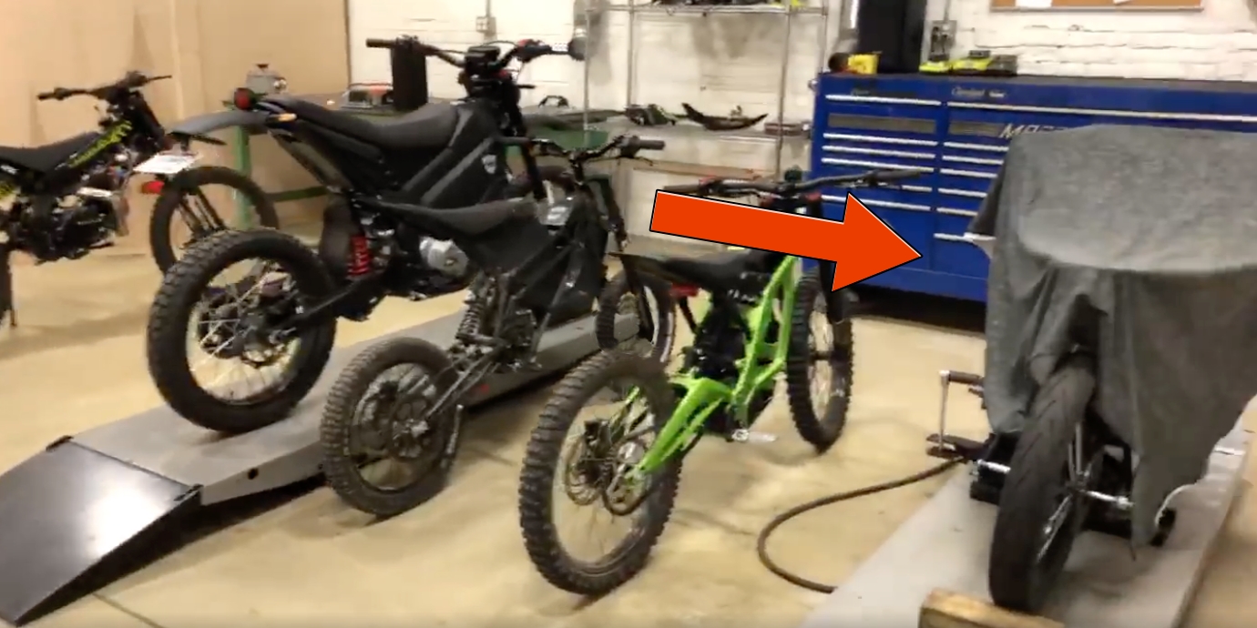 The mystery e-bike is also parked next to the Sur Ron Light Bee, which helps us get a rough size comparison.
