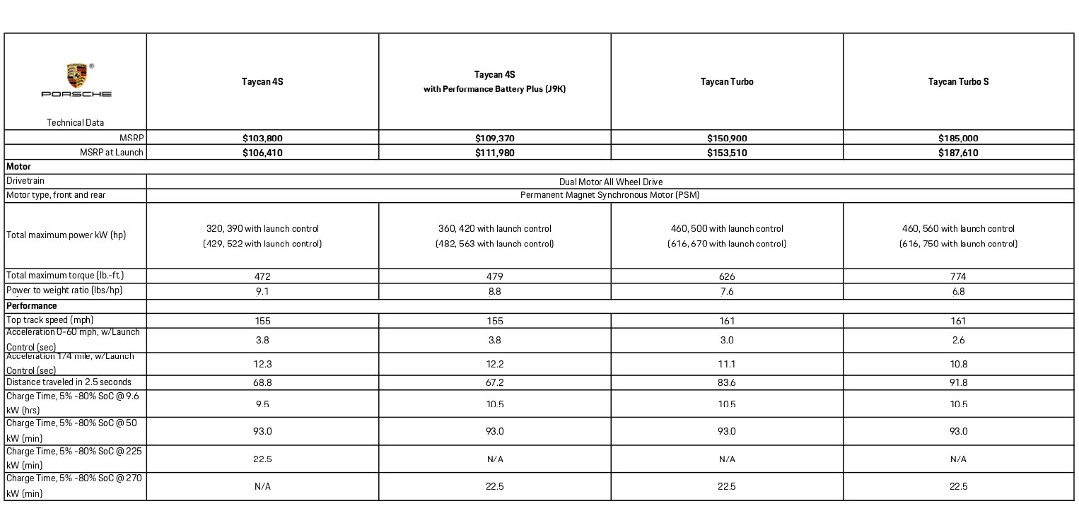There are more nuanced similarities and differences between the Taycan 4S and the previous versions, as described by Porsche: