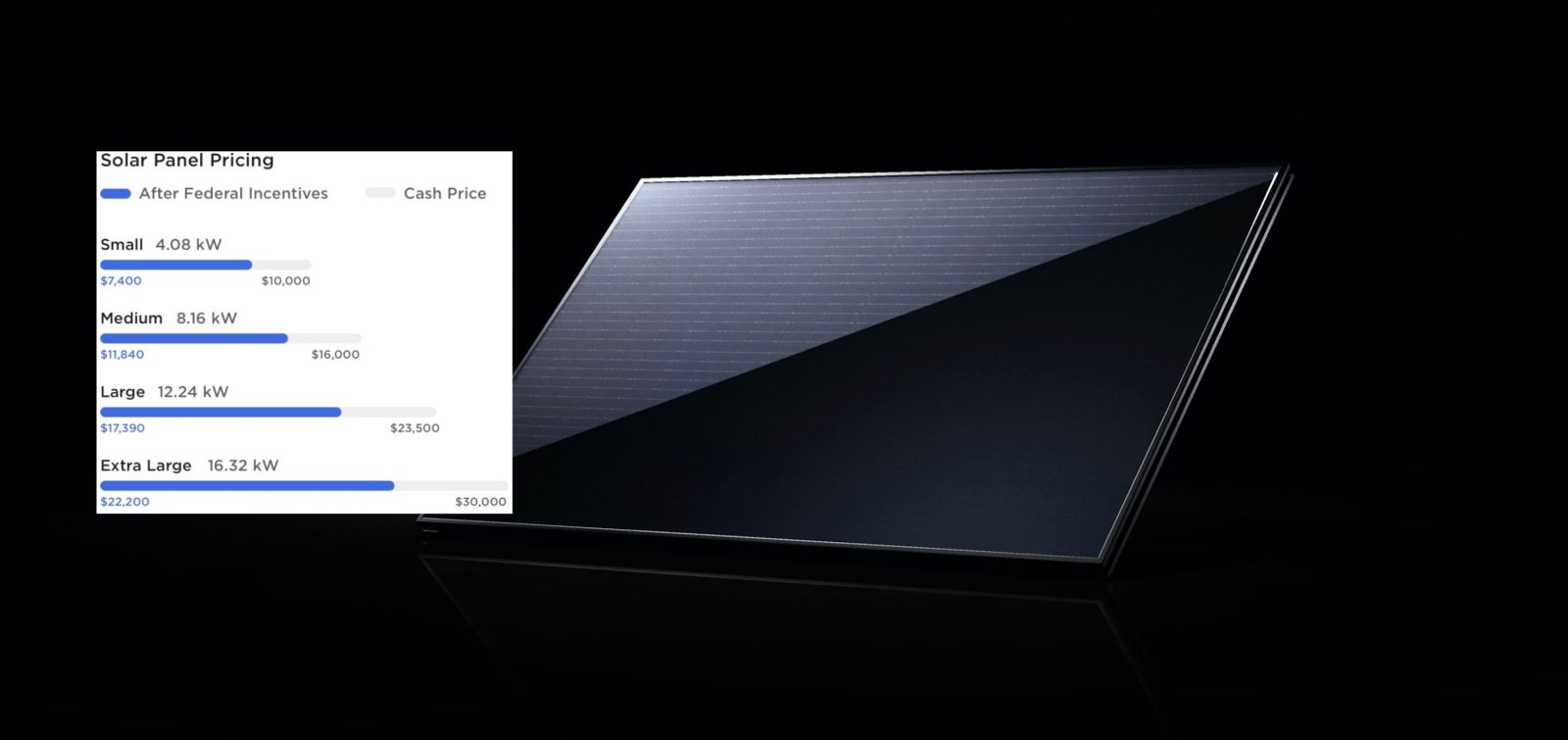 With the new solar panels, which are 10% more powerful according to a source familiar with the matter, Tesla’s medium-size solar system outputs now 8.16 kW and it costs just $16,000 before incentives or $1.96 per watt.