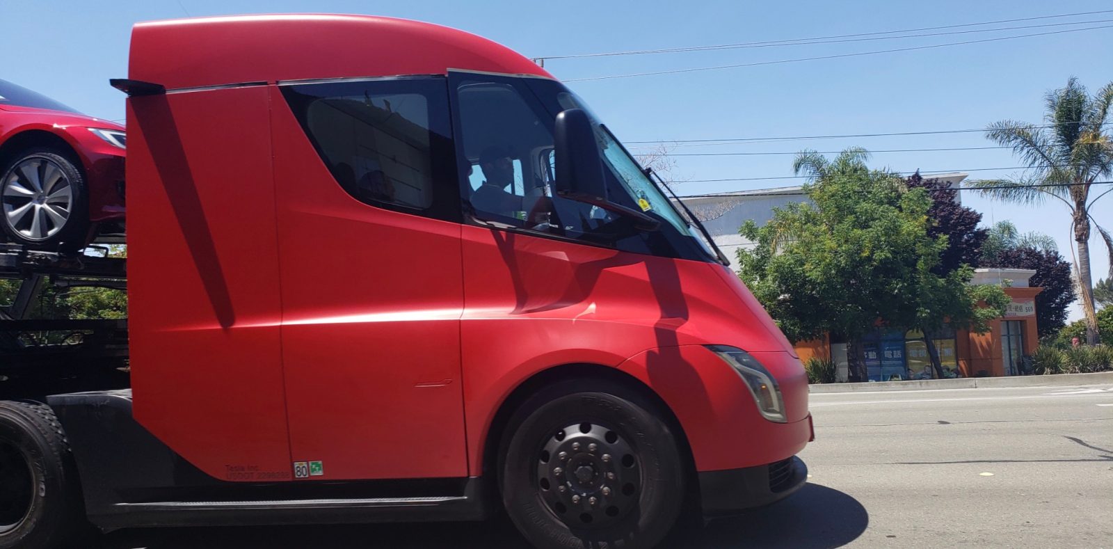 Spotted the #Tesla semi on the road in Fremont today with a trailer full of Tesla cars. Very neat! pic.twitter.com/gZjHVZ5OXn