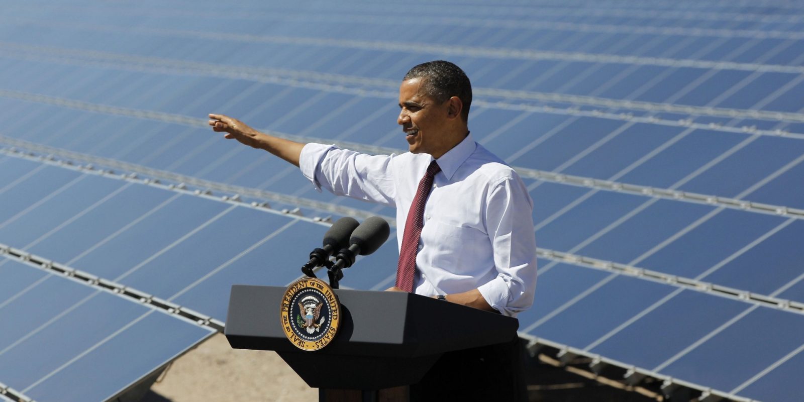 Electrek chose an image of Obama with solar panels for this story. Why? Because there were plenty to choose from — and we found no images of Trump with solar.