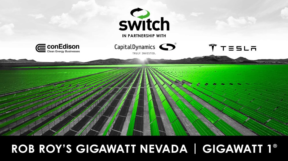 “With today’s announcement Rob Roy’s Gigawatt Nevada now has four solar with battery storage projects in the state creating nearly 1 gigawatt of energy solutions. This project also ensures Switch’s power costs will remain in the 5 cent a KWh range and Switch clients will continue to enjoy low-cost, 100% renewable power for decades to come.”