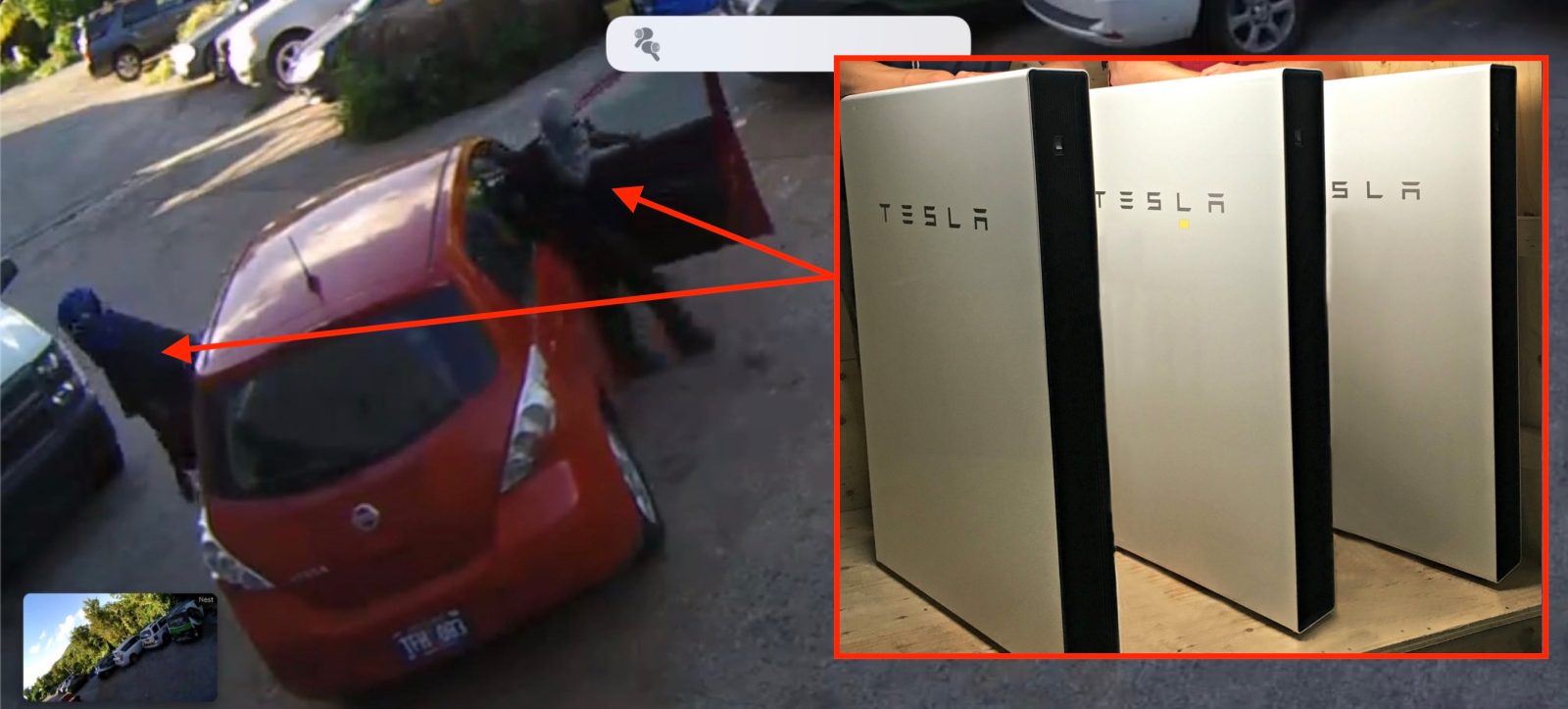 Furthermore, ProSolar has the thieves dragging the Powerwalls on the concrete floor on camera — showing that they scrapped the paint off one side of each device and making them easily recognizable in the process.