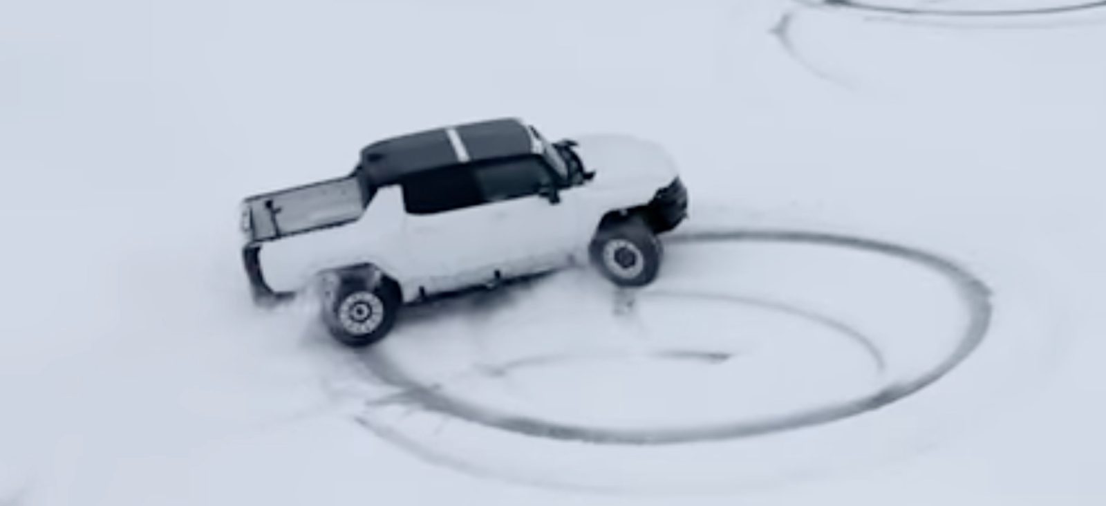 This week, GM released a new video of a GMC Hummer EV electric pickup prototype doing donuts in the snow: