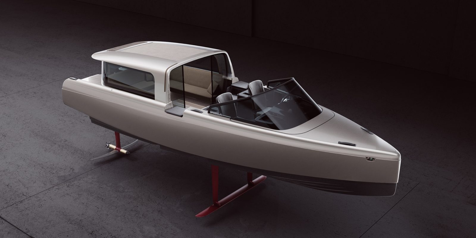 It relies on a similar hydrofoil system used on Candela’s other electric boats, which the company’s 50+ engineers designed while relying on experience from the drone, aerospace, and software industries. The onboard Flight controller automatically changes the foil’s angle of attack when the boat reaches 16 knots, allowing it to lift off and fly above the waves.