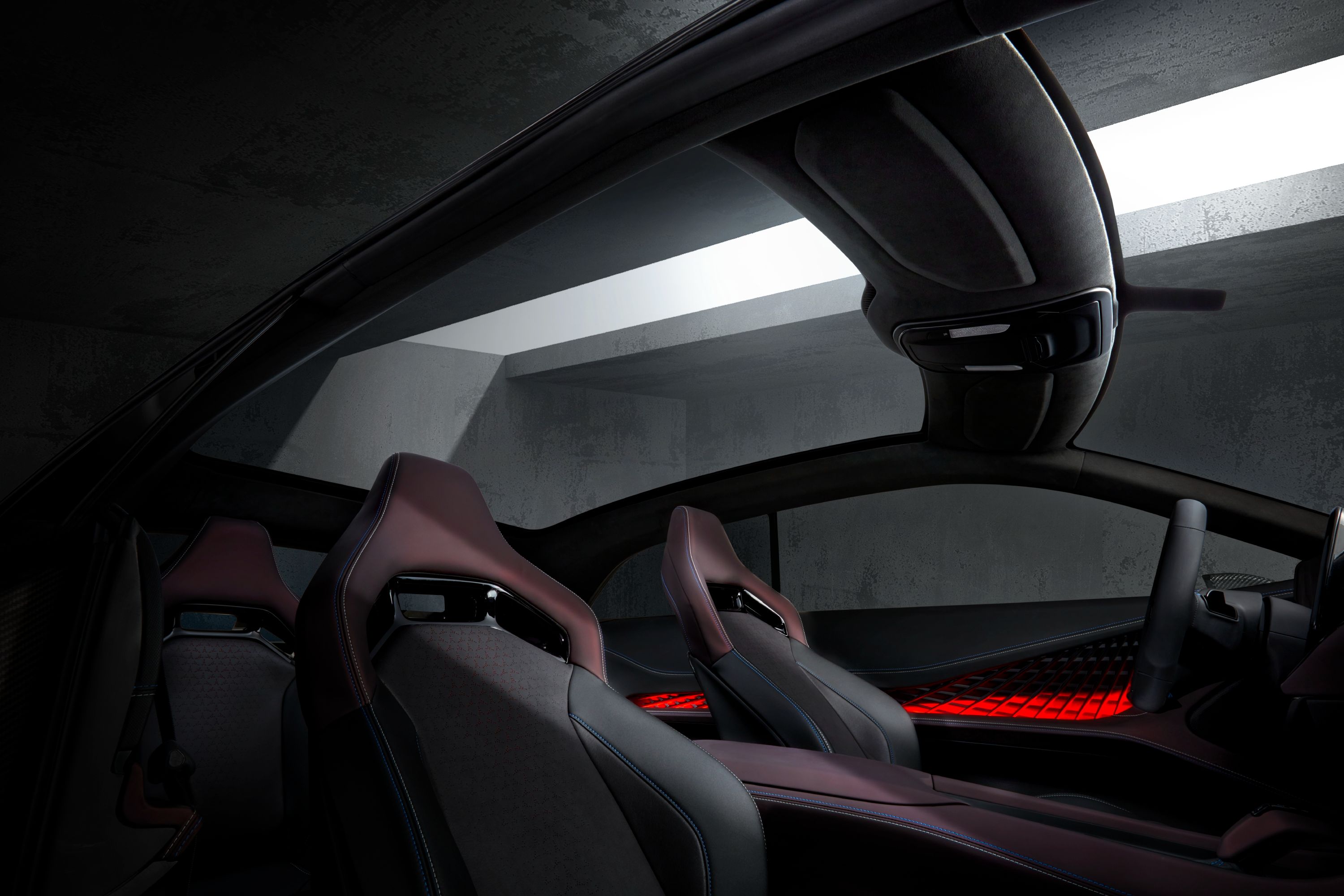 The interior… looks reasonably normal as far as concept car interiors go. That said, this is the part where concepts usually change the most, so we wouldn’t put a lot of stock into it, but you’ve got the now-standard large center screen, lightweight seats, and a panoramic glass roof, which is a novel feature for a Charger.