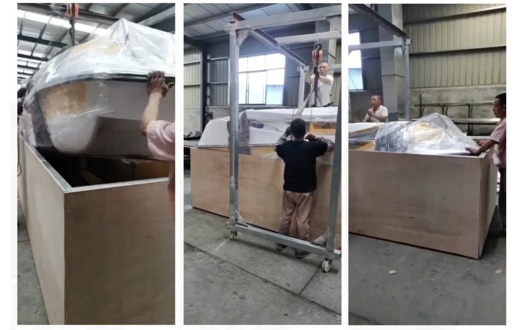 I paid a down payment of 30%, and Frank got to work building my boat. He showed me pictures of the partially assembled boat several weeks later, and eventually the boat was finished. I paid the final 70% of the balance and Frank got my little boat on a bigger boat.