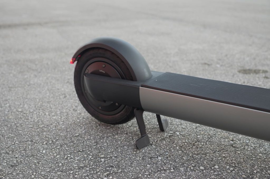 There are also a lot of thoughtful features that make the M2 feel like a real vehicle. The 800-lumen headlight is excellent, and the 270° daytime running light ring makes the scooter more visible from all angles. The rear light includes a brake alert, and everything is IP66-rated, so riding in the rain is no problem. Or at least it’s not a problem for the scooter. I’d still recommend you not ride in the rain unless you have to since its harder to be seen by cars and you do have to worry about loosing traction on slick surfaces like wet leaves, smooth pavement, etc.