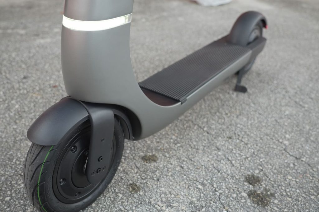 The effect is genuinely impressive. You can feel it from the first few feet of riding. At slow speeds, the front end feels calm and composed, not fidgety or loose. At high speeds, it tracks in a straight line with an almost eerie smoothness. I can even ride the scooter no-handed like a bicycle or motorcycle, though it just feels wrong to do so because I’ve spent my entire life knowing that you can’t ride a scooter no-handed… at least until now.