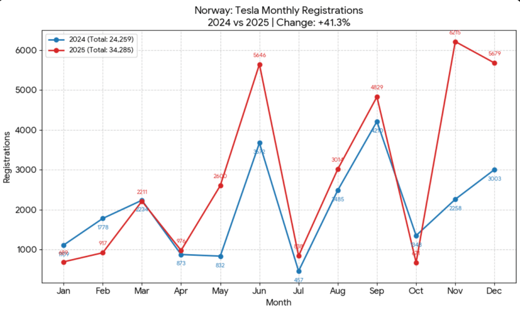 However, this is clearly temporary. Most of Tesla’s growth in Norway in 2025 came from the last two months of the year: