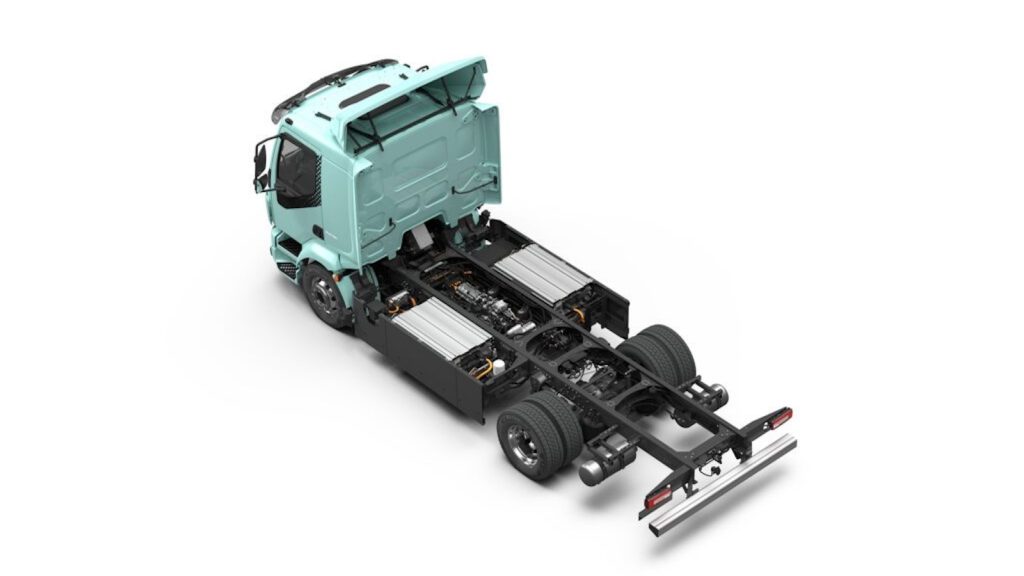 The new 14 tonne (~30,000 lbs.) CGVWR truck features a 145 kWh battery pack that sends power to a 180 kW (~240 hp) electric motor that uses axle gearing to apply a nearly unbelievable, Earth-moving 11,800 lb-ft of torque at 0 rpm. That combination is good enough to haul what you need to haul up to 200 km (~125 miles) on a full charge.