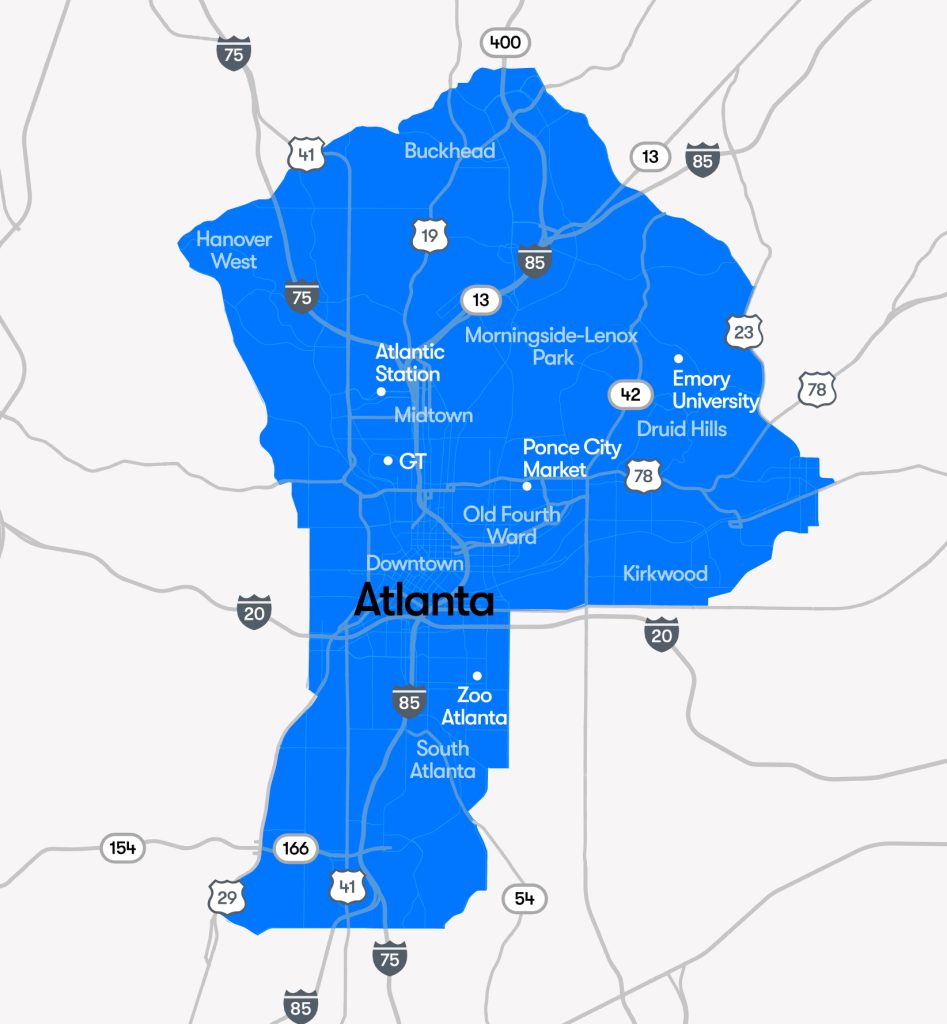 Waymo now covers 6 total cities in the US: Los Angeles, Miami, Phoenix and San Francisco, along with Atlanta and Austin through a partnership with Uber. Each has a limited service area, those areas have been expanding over time. Right now, the service areas look like this: