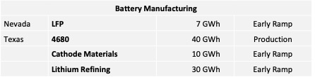 We now produce dry-electrode for 4680 cells with both anode and cathode made in Austin. We expect both domestic cathode material in Texas and LFP lines in Nevada to begin production in 2026.