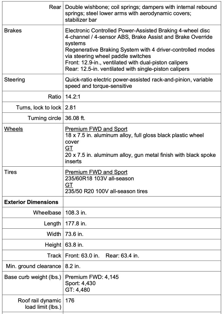 Subaru brags that it still manages to be more efficient than the competition despite its high performance, saying it has best-in-class range (308/287/273 miles for Premium/Sport/GT trims) and efficiency (129MPGe), while still being just as quick to 60 as other small/mid-size electric SUVs are. It does this despite “best-in-class” ground clearance of 8.2 inches.