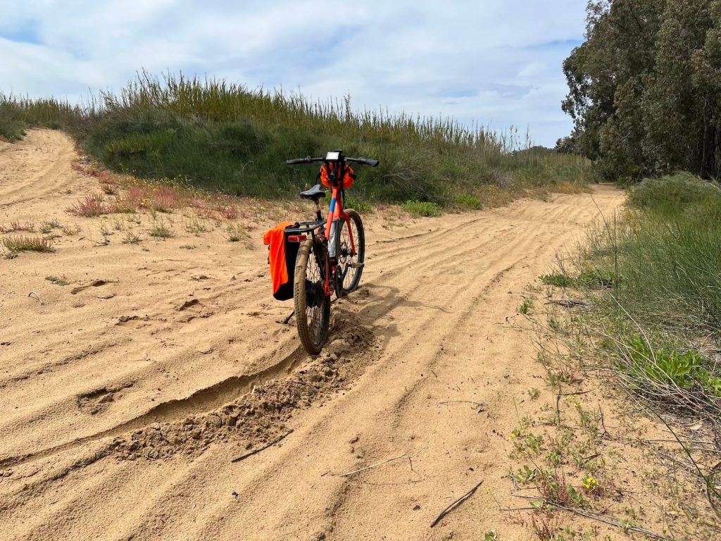 My bike and I were so covered in mud that I was practically begging for anything dry. And just my luck, as I continued on, the trails morphed again – back into dry powdery sand.