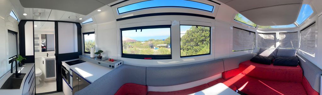 All these RV features are crammed into an interior which actually feels quite spacious. While RVs are often cramped due to packing lots of stuff into a small space, the AE.1 doesn’t feel that way. Windows that wrap around the entire cabin give an airy feeling – and they can all be opened too (bug screens included), to give you plenty of fresh air.