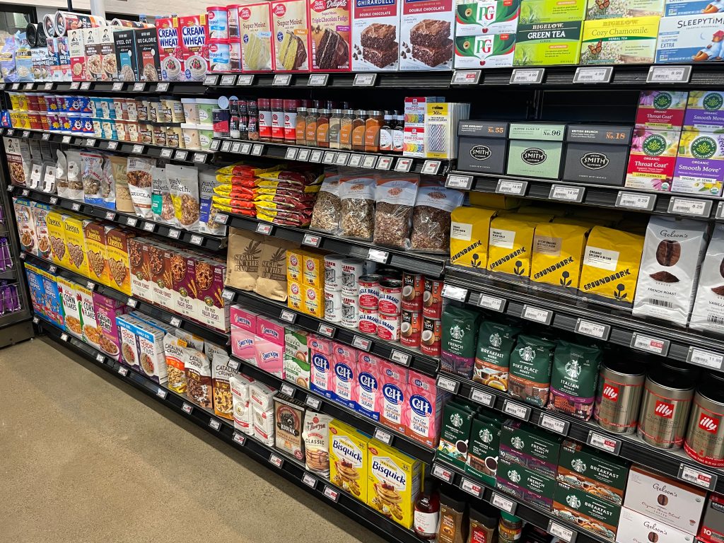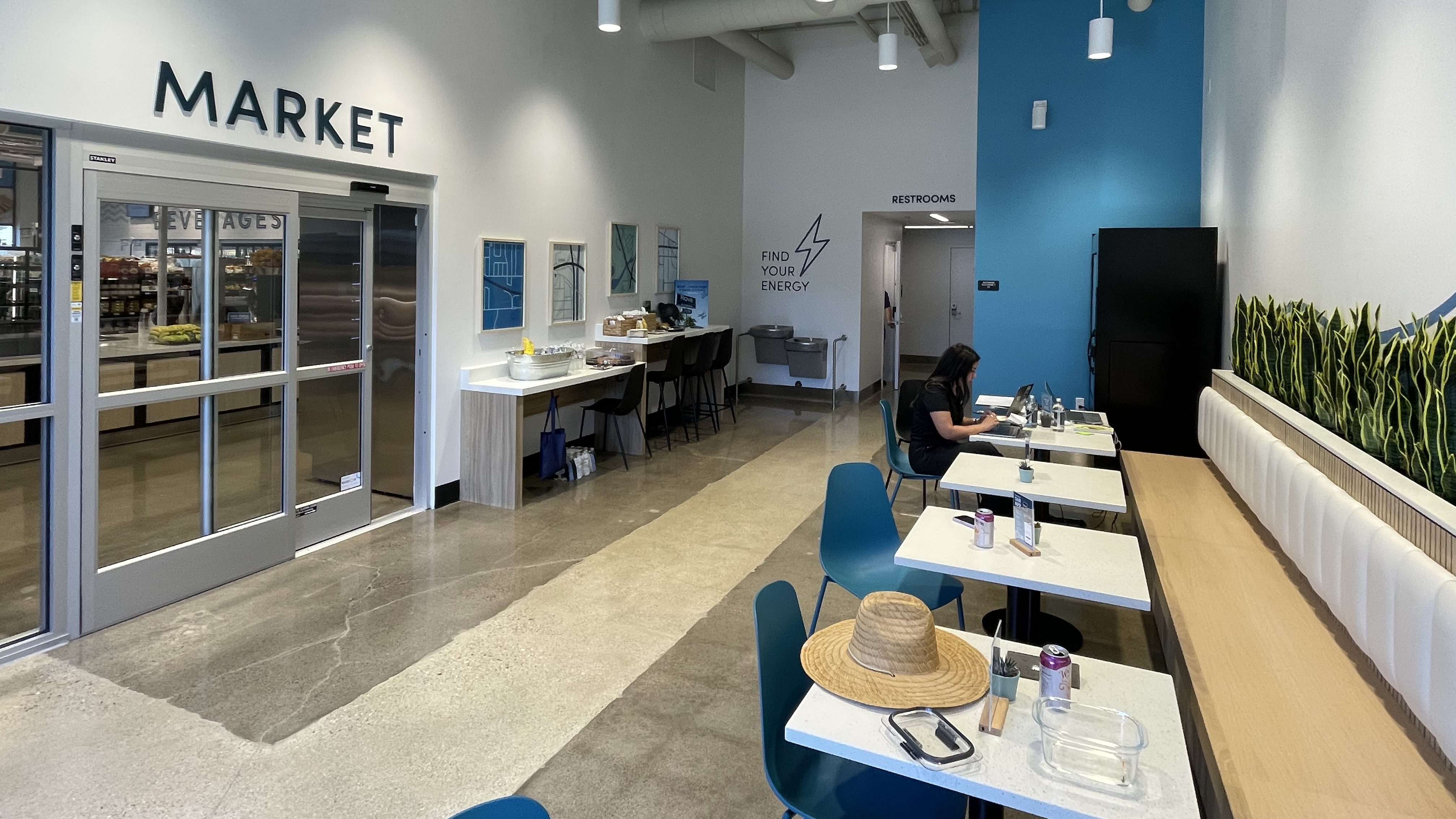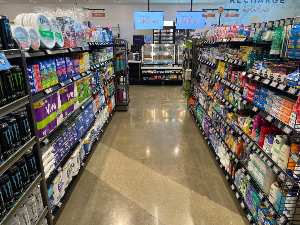 The grocery store concept is somewhere between a convenience store and a full-size Gelson’s. Gelson’s is calling it “ReCharge by Gelson’s” to differentiate from its full locations, but it still offers a mix of fresh prepared foods, convenience store staples like coffee and hot dogs, grocery necessities like cereal and cleaning supplies, and on-the-road treats like ice cream bars. (I picked up some oat milk while I was there, two birds with one stone)