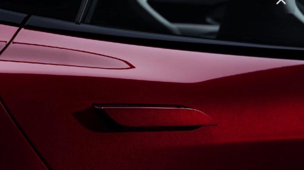 The vehicles come in an exclusive Garnet Red paint (with matching door handles on the Model S) that is not available on any current Tesla production vehicle. Gold Tesla T badges on the front, a gold Plaid badge on the rear, and a Signature badge on the rear complete the exterior look.